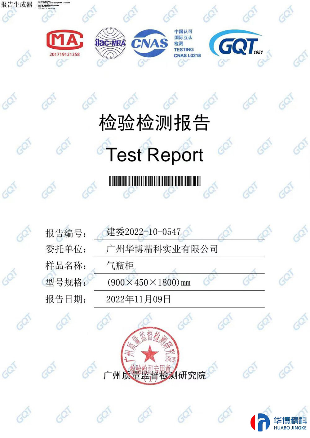 气瓶柜检测报告