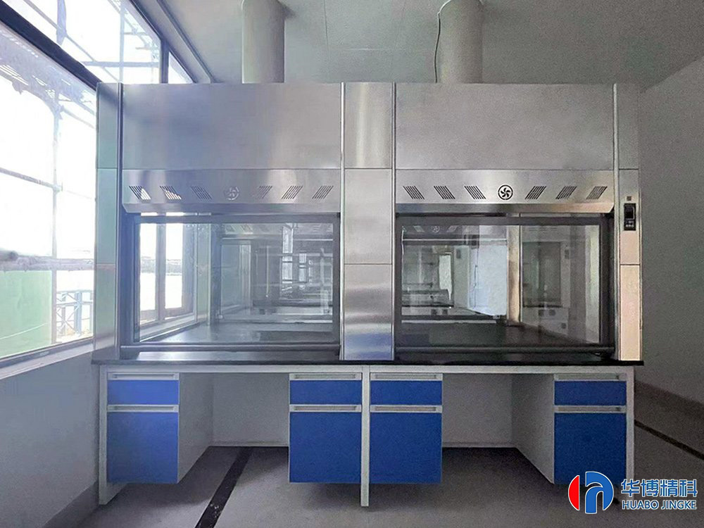 、通风柜的结构是上下的,顶部有一个排气孔,可以安装风扇。